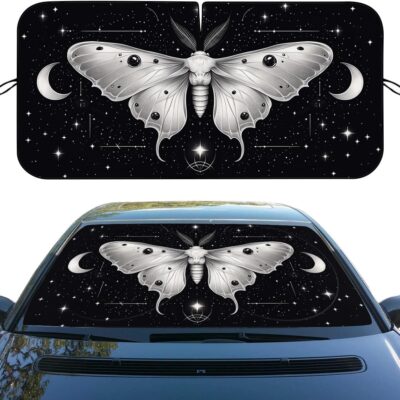 Moth Car Windshield Sunshades Vintage Tarot Sky Moon Stars Witchcraft Front Window Sun Shade Blocks UV Rays Sun Visor Protector for Car Sedan Truck SUV Accessories 59″ L x 31.5″ W
