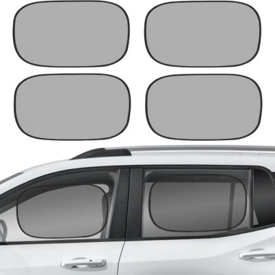 4 PCS Universal Car Window Shades for Baby, 20″x12″ Static Cling Mesh Car Shades for Side Windows, Easy Fold UV & Sun Protection Window Covers for Family Travel