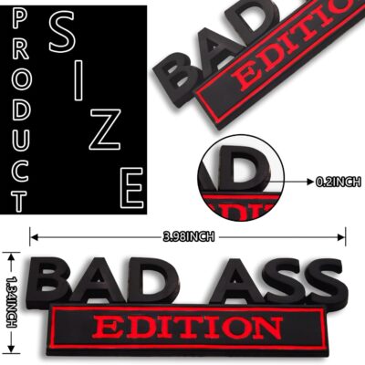 Bad Ass Edition Emblem, Bad Ass Car Tail Badge, Automobile Funny Modification Label Decal, Cars Fender Bumper Sticker Body Sticker Fit for Universal Vehicle(Black&Red)