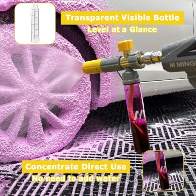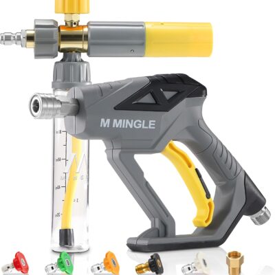 M MINGLE Concentrate Foam Cannon with Pressure Washer Gun, Ready-to-Use Mini Soap Cannon with 5 Nozzle Tips, 1/4″ Quick Connect for Thick Sudsy Wash