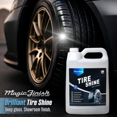 Magic Finish Tire Shine (1 Gallon) – Silicone-Based Tire Dressing for Long-Lasting Wet Look – High-Gloss Car Cleaning Supplies for Pro Detailing Results