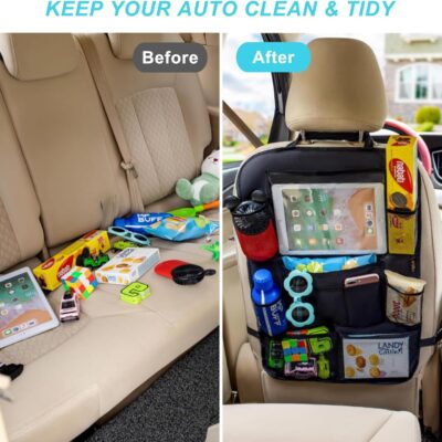 Matenf Car Organizer Back Seat with 9 Storage Pockets & 10″ Tablet Holder, 1Pack Seat Back Cover for Kids Toddlers, Kick Mats Protector, Keep Cars Vehicles Organized & Tidy, Travel Accessories