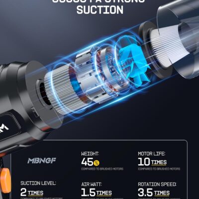 Car Vacuum Portable Cordless, 35000PA High Power Suction & Blower, Wireless Handheld Vacuum Cleaner for Car, Home, Office, Pet(Abyssal Black)