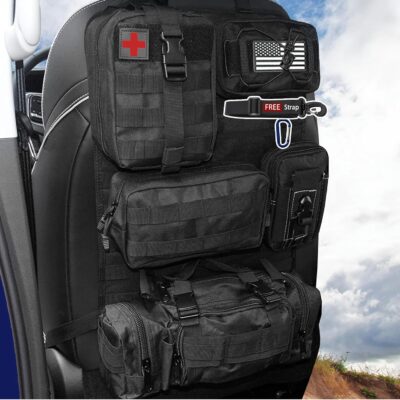 6 Pack Tactical Molle Automotive Seat Back Organizer Tactical Vehicle Panel Organizer with 5 Detachable Molle Pouch for Car Truck Ford Jeep Vehicle,US Flag Patch For Man (5 Pouches)