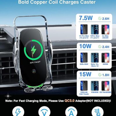 Wireless Car Charger,Mosurr 15W Auto Clamping Phone Holders for Your car fit for iPhone 16 15 14 Mini Pro Max, Samsung Galaxy S25 Ultra S24 S23+, etc, Fathers Day for Gifts (Sliver)