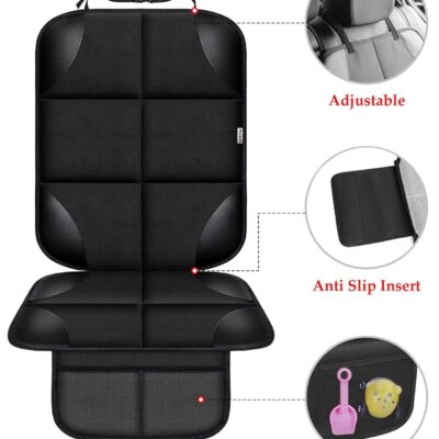 Meolsaek Car Seat Protector for Child Car Seat, Durable 600D Fabric Waterproof Car Seat Cover with Thick Pad Non-Slip Backing,No Imprints (Black 1pc)
