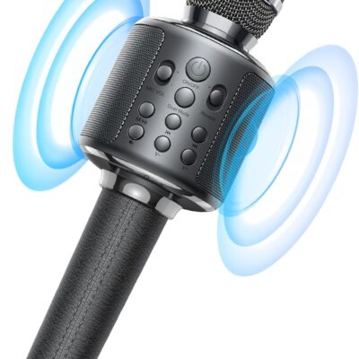 Wireless Bluetooth Karaoke Microphone, Built-in Loud Speaker for 10H Playback, Add Reverb/Duet Mode/Earbuds Monitoring, Portable Karaoke Machine for Entertainment & Singing Practice (Gray)