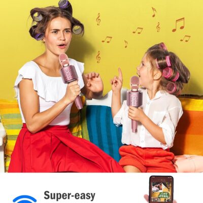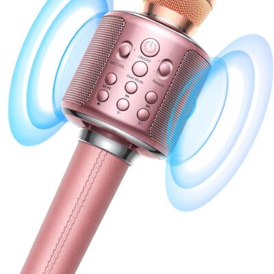 Wireless Bluetooth Karaoke Microphone, Built-in Loud Speaker for 10H Playback, Add Reverb/Duet Mode/Earbuds Monitoring, Portable Karaoke Machine for Entertainment & Singing Practice (Rose Gold)