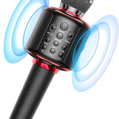 Wireless Bluetooth Karaoke Microphone, Built-in Loud Speaker for 10H Playback, Add Reverb/Duet Mode/Earbuds Monitoring, Portable Karaoke Machine for Entertainment & Singing Practice (Black&Red)