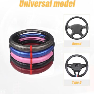 Moly Magnolia Carbon Fiber Steering Wheel Cover, Universal 15 inch Breathable Anti Slip, Black, Leather & Carbon Fiber, Truck & SUV, Automotive Steering Wheel Covers