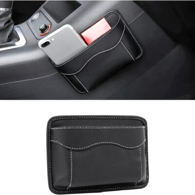 Car Seat Side Pocket Organizer, PU Leather Mini Storage Bag for Auto Door Window Console, Pen Phone Holder Tray Pouch Vehicle Seat Gap Filler for Organize Document, Registration, Notepad (Black)