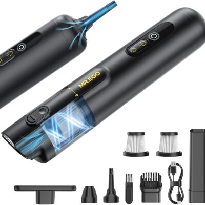 Mr.ego Handheld Car Vacuum Portable Cordless, 4-in-1 Mini Vacuum with 18500Pa Strong Suction, Desk Vacuum Cleaner and Air Duster with Green LED Light for Small Jobs, Car, Home, Keyboards (Black)