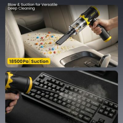 Mr.ego Car Vacuum Portable Cordless, 18500Pa Hand Held Vacuum Cleaner and Air Duster, 4-in-1 Mini Vacuum with Multi-Nozzles for Small Jobs, Car, Home, Desk, Keyboards (Black)