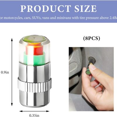 8 PCS Tire Pressure Monitor Valve Stem Caps, 2.4Bar 36 PSI Tire Pressure Sensor Indicator, 3 Color Eye Alert Pressure Monitoring Valve Stem Cover for Cars Trucks SUVs (Silver)