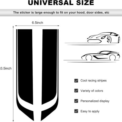 Car Hood Decal Sticker, Automotive Side Body Stripe Graphics Racing Bumper Sticker, Universal Vehicle Skirt Roof Bonnet Vinyl Decal Exterior Decoration, Car Accessories (Black)