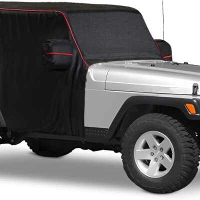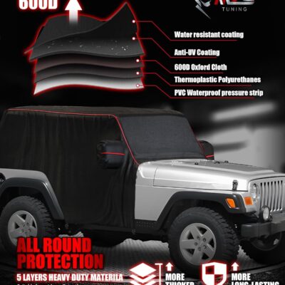 MZS Cab Cover Compatible with Wrangler TJ YJ 2 Door 1986-2006, 600D Waterproof Wrangler Cover with Mirror Pocket 6 Gust Hook Car Half Covers Windproof Sun Snow Rain Scratch Protection