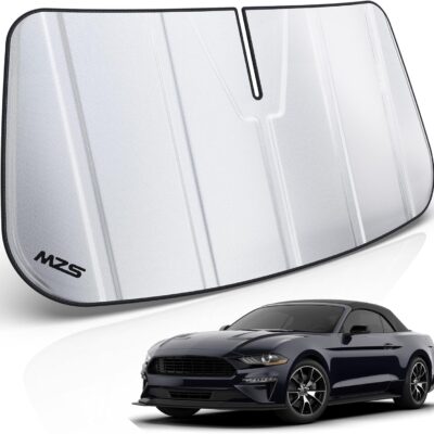 MZS Windshield Sun Shade Compatible with Mustang 2015-2023, Foldable Car Sun Shade Shield with Storage Pouch, Front Window Visor Sunshade Accessories for Interior Protector