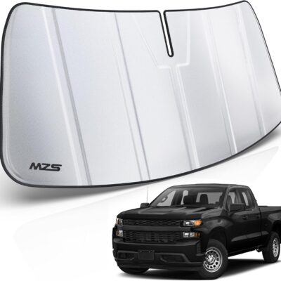 MZS Windshield Sun Shade Compatible with Silverado Sierra 1500 2500HD 3500HD 2019-2026, Foldable Truck Sun Shade Shield with Storage Pouch, Front Window Visor Sunshade for Interior Protector