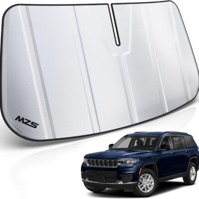 MZS Windshield Sun Shade Compatible with Grand Cherokee/L 2022-2026, Foldable Car Front Window Sunshade with Storage Pouch, Sun Visor Shield Accessories for Interior Protector