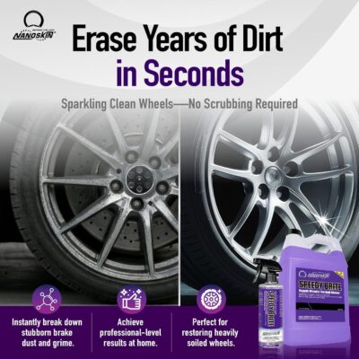 Nanoskin SPEEDY BRITE Pro Grade Wheel & Tire Acid Cleaner, 1 gallon – Chrome & Coated Wheel Safe, Cleaning with Organic Acid | Removes Brake Dust & Road Grime for Auto Detailing, Body Shop Safe