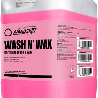 Nanoskin WASH N’ WAX with Carnauba 5 gallons – Cleans & Shines in One Step | Works with Foam Cannon, Foam Gun, Bucket Washes, Pressure Washer | Carnauba Wax Protection for Cars