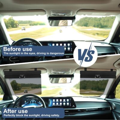 NAZZO Sun Visor Extender for Cars, Adjustable PC Sunshade Lens, Car Sun Visor Extension Blocker, Glare, UV, Stray Light, Snow Blindness Protector, Safe Driving, Universal for Car SUV, Black