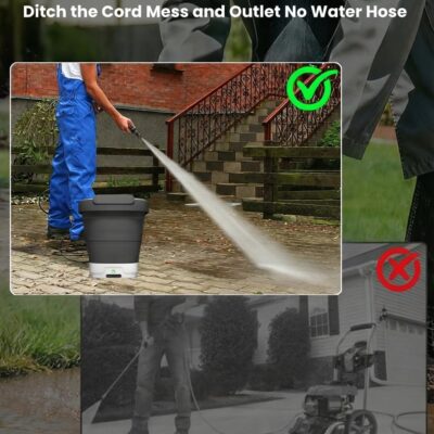 Portable Electric Pressure Washer w/3.2Gal Tank, 4-in-1 Nozzles, Max 290 PSI Foldable Cordless Pressure Washer for No Water Hose Apartment, Camping, Bike Cleaning, Garden Care and Pet Cleaning