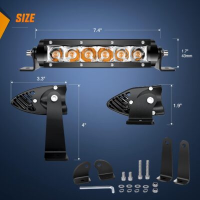 Nilight LED Light Bar Amber 2Pcs 7 Inch 30W Spot 3000LM Super Slim 3D Driving Fog Off Road Work Lights Pods for Trucks Pickup SUV ATV UTV Boat 4×4 Van Camper- 2 Style Mounting