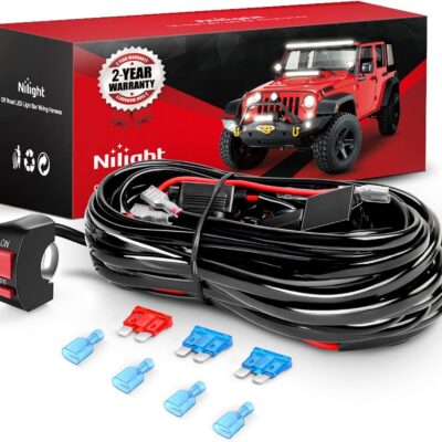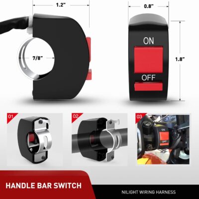 Nilight LED Light Bar Wiring Harness Kit Motorcycle Handlebar Push Button Switch 16AWG 2 Leads 12V On Off for ATV UTV Driving Lights 7/8inch