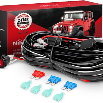 Nilight LED Light Bar Wiring Harness Kit 16AWG 12V On Off Waterproof Switch Power Relay Blade Fuse-2 Lead,2 Years Warranty (10020W), Black, Red, Blue, Green