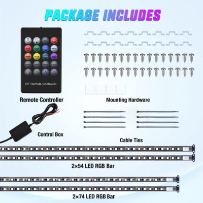 Nilight 4Pcs Car Underglow Neon Accent Strip Lights 256 LEDs RGB Multi Color DIY Sound Active Function Music Mode with APP Control and Remote Underbody Light Strips