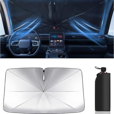 Foldable Windshield Sun Shade Umbrella Reflective Car Window Cover with Bendable Handle, Heat Blocker for SUV, Truck, Sedan Ideal Gifts for Men & Women