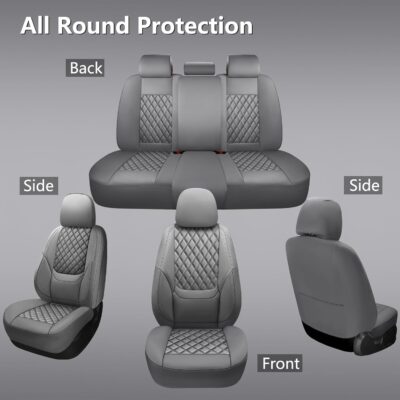 NS YOLO Full Coverage Leather Car Seat Covers Full Set,Waterproof Seat Covers for Cars,SUVs Pick-up Truck, Car Seat Cushion,Car Seat Protector,Grey Seat Cover with 5 Seats