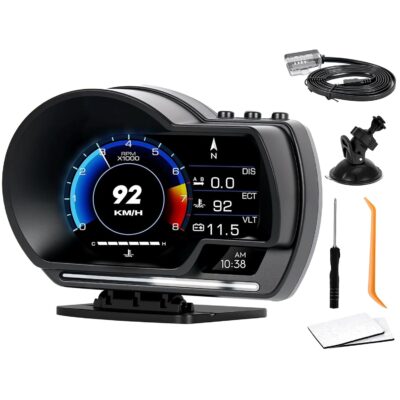 OBD2 Gauge Display, Heads Up Display for Cars, Gauge with OBD GPS Dual System, OBD2 Speedometer for Car with Water TEM, Volt, Mileage, Overspeed & Fatigue Driving Alarm, RPM, Works Great for Most Cars