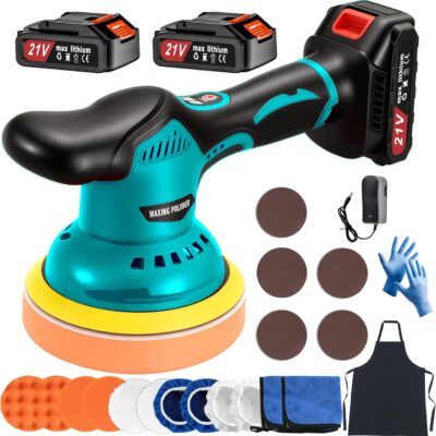 Cordless Car Buffer Polisher Kit with 2x21V Batteries, 6 Inch Car Polisher with 8 Variable Speed Max 6000RPM & 21 PCS Attachments, Buffer Polisher for Car Detailing, Sanding, Scratch Removing
