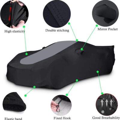 Custom Fit for Porsche 911/Boxster/718/Cayman Indoor Car Cover Porsche Accessories No Faded UV Resistant Dust-Proof Protection Breathable Anti-Wrinkle with Storage Bag( Black & Gray Combo)