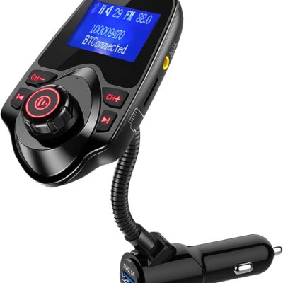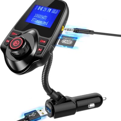 ONN Upgraded 2026 Bluetooth Car FM Transmitter, 1.44” LCD Display, Flexible Gooseneck, Hands-Free Calling, Dual USB Fast Charger, AUX & Micro SD Support for Cars, SUVs & Trucks