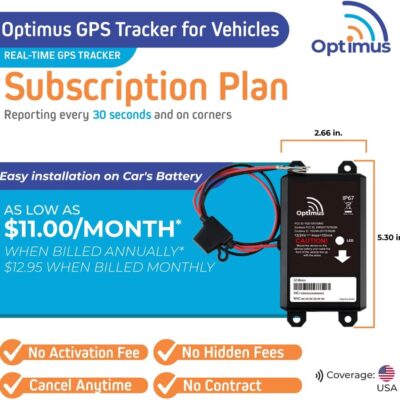 Optimus Wired GPS Tracker for Vehicles – Easy Installation on Car’s Battery – Low Cost Subscription Plan Options