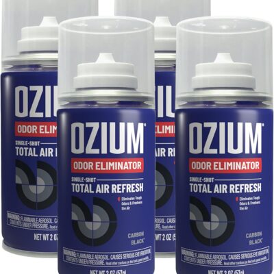 OZIUM Air Freshener Odor Eliminator, 2oz Single Shot Total Air Refresh & Car Air Freshener – Carbon Black – 4 Pack