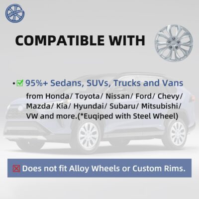 Gloss Silver 16-inch Universal Wheel Covers Hubcaps for Rims – Set of 4 | Snap-on Design Fits Sedans, SUV, Truck, Van 2000-2026 | Steel Wheels Only | 90 Sec Install No Tools