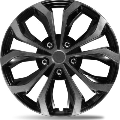 Dual-Tone Black & Gunmetal Gray 15 inch Universal Wheel Covers Hubcaps for Rims – Set of 4 | Snap-on Design Fits Sedans, SUV, Truck, Van 2000-2026 | Steel Wheels Only | No Tools
