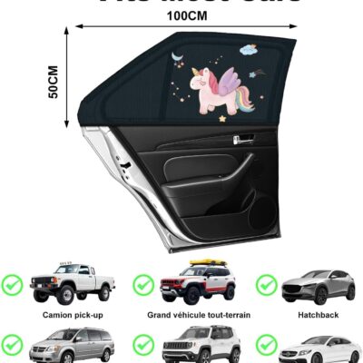 Car Window Shades for Baby, 2 Pack Car Sun Shades with UV Protection, Universal Fit Stretchable Side Window Sunscreen Sun Shades with Unicorn Motifs, Rear Window Shades for Kids