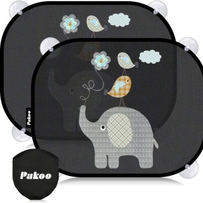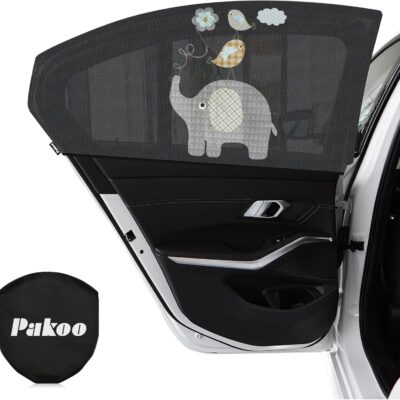 Car Sun Shade for Baby with UV Protection, 2 Pack UV Protection Breathable Car Window Sun Shade for Children with Cute Animal Motifs, 17.7 x 14 inches Sun Shades with 8 Cups
