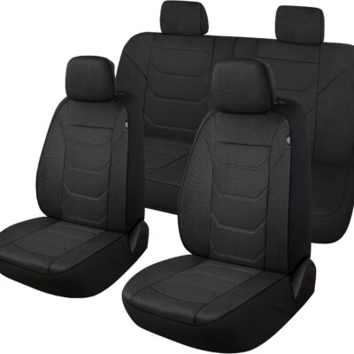 3D Air Mesh Car Seat Cover Full Sets Washable and Breathable Premium Cloth Automotive Vehicle Seat Covers for Cars Interior, Universal Fit for Most Cars, Sedan, Truck, SUV(Black)