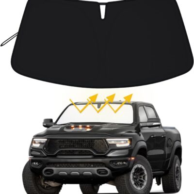 Premium Windshield Sun Shade for 2019-2025 2026 Dodge RAM 1500, Reflective 310T Material Front Window Sun Visor Blocks UV Rays Foldable Sunshade