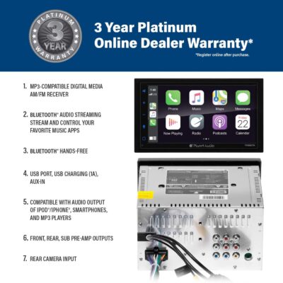Planet Audio P9900CPA Car Stereo – Wireless CarPlay Android Auto, Double-Din, 6.75 Inch Touchscreen, Bluetooth, No DVD CD Player, Radio Receiver