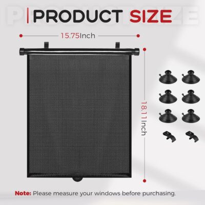 PLTCAT 2 Pack Car Sun Shade Side Window for Baby, Roller Vehicle Shades Sun Protection Shade for Car Side Window (Standard-16”x18”)