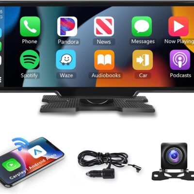 Podofo 10.26″ Wireless CarPlay Car Stereo with 1080P Backup Camera, Portable Car Radio with Wireless Android Auto, IPS Touchscreen, Voice Control, Bluetooth, CarPlay Navigation, AUX/FM