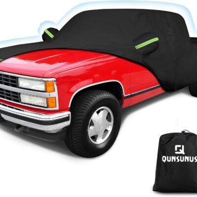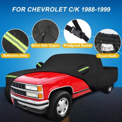 QUNSUNUS Waterproof Truck Cover for Chevrolet C/K 1500/2500/3500 1988-1999, Outdoor Truck Cover with Zipper, Full Exterior Car Covers for Automobiles All Weather with Wind, Sun, UV and Dust Protection