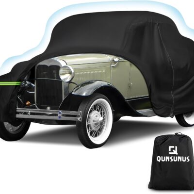 QUNSUNUS Waterproof Car Cover for Ford Model A Sedan/Convertible 1928-1931, All Weather Outdoor Car Covers with Zipper and Elastic Edges for Wind, Sun, UV and Dust Protection